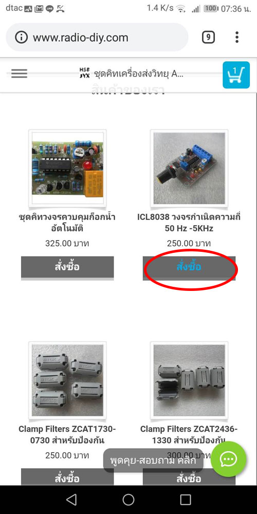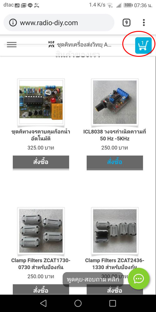 เมื่อลูกค้าเจอสินค้าที่ต้องการคลิกที่ปุ่ม "สั่งซื้อ" สามารถกดสั่งซื้อสินค้าได้หลายชนิดในใบสั่งซื้อเดียวกัน