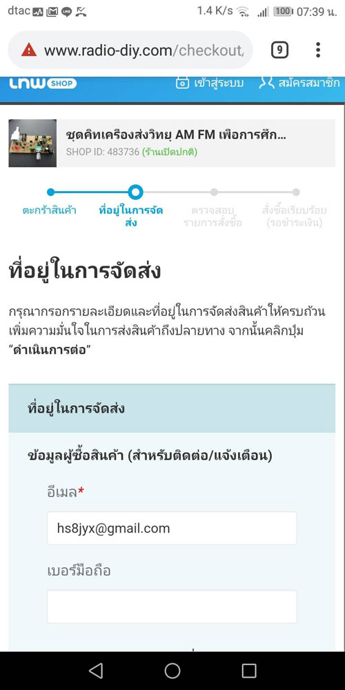 ลูกค้ากรอกข้อมูลที่อยู่ สำหรับจัดส่งสินค้า