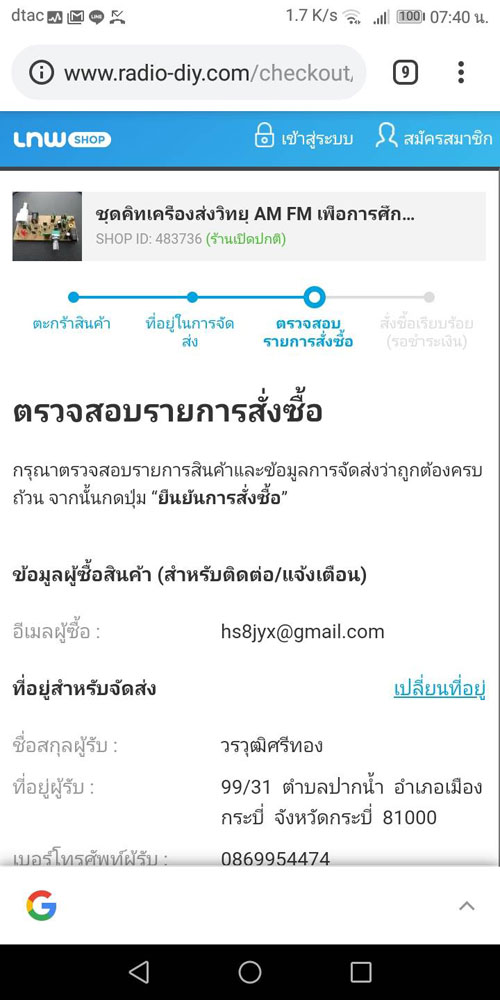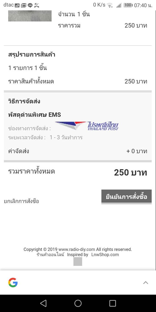 เมื่อข้อมูลทุกอย่างถูกต้อง คลิกที่ "ยืนยันการสั่งซื้อ" เป็นอันเสร็จสิ้นขั้นตอนการสั่งซื้อ หลังจากนั้นลูกค้าสามารถโอนเงินตามยอดที่แจ้งไว้ในใบสั่งซื้อได้เลย