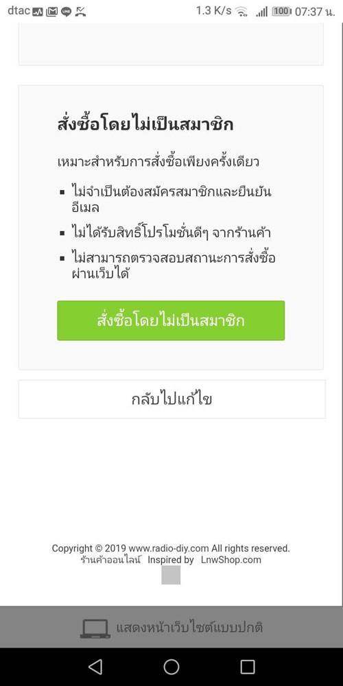 เพื่อความสะดวก รวดเร็ว ลูกค้าสามารถเลือกสั่งซื้อแบบไม่ต้องสมัครสมาชิกได้